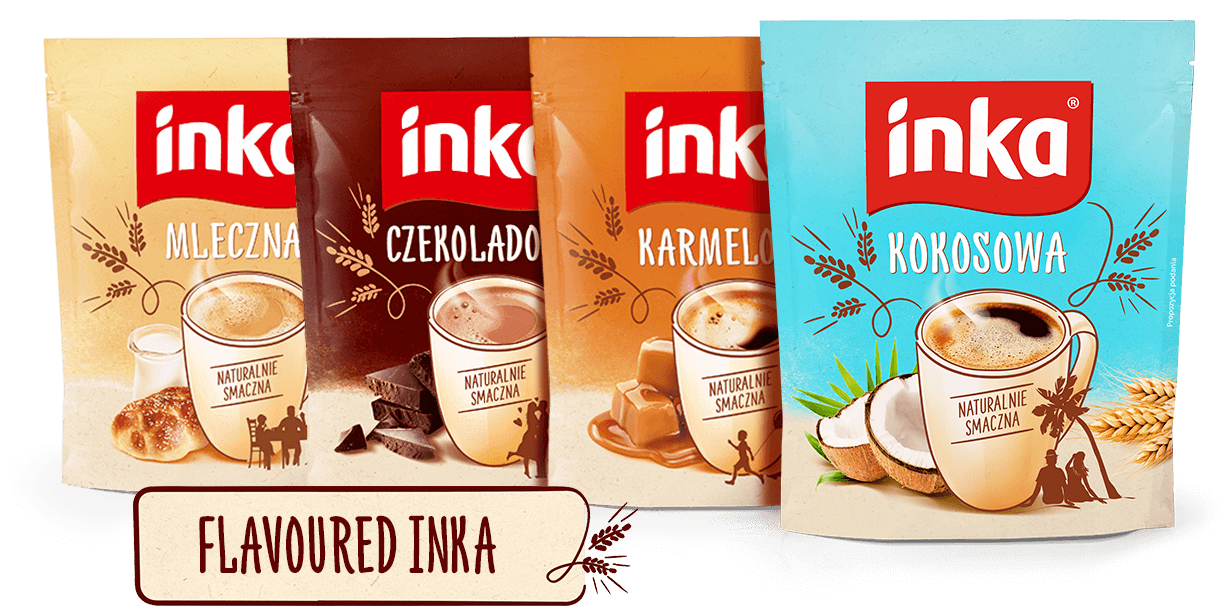 Chocolate, caramel, milk and coconut are four intense flavour notes that – combined with the cereal beverage – comprise the flavoured line of cereal beverages that has won the hearts of consumers. Inka knows that naturalness complements the pleasure off lavour. In this duo, delight is expressed in tempting flavours and naturalness – in cereals. Unique aroma, wafting across the room as you open the package, invigorates the taste buds and makes us crave for more - after one cup of flavoured cereal beverage, we dream of another one... and another one. At last, the line of flavoured Inka cereal beverages consists of 4 delicious variants that we cannot resist.